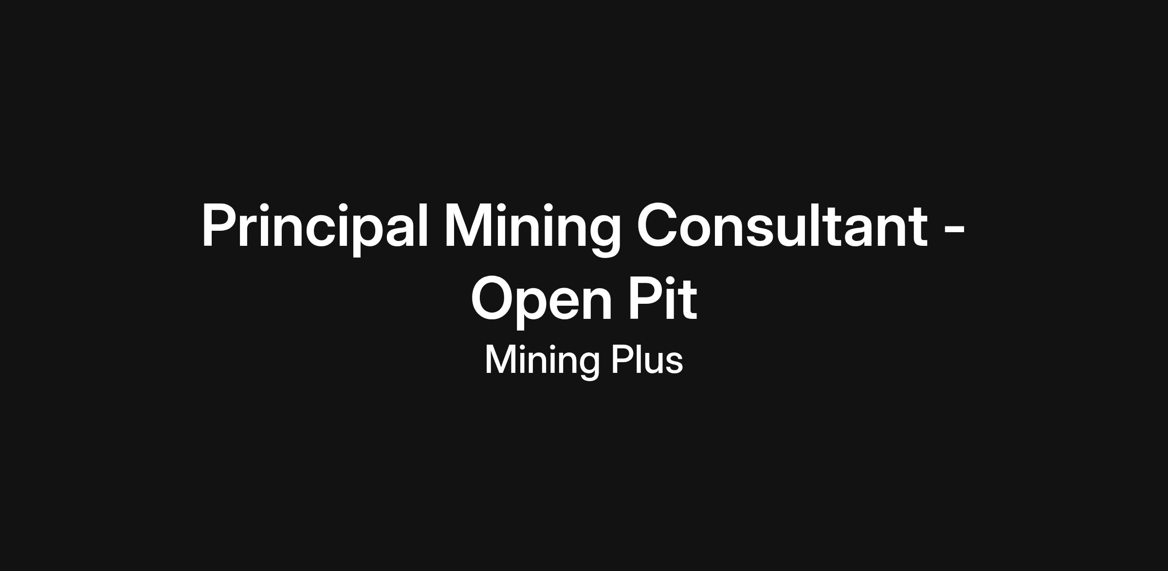 Mining Plus has an exciting opportunity for a Principal Mining professional with demonstrated expertise in open-pit projects. As a Principal Mining Consultant, you are responsible for providing premium consulting services to our clients. You will apply your expert Mining Engineering experience to provide recommendations to Mining Plus clients and projects across a variety of metal commodities. You will have the opportunity to work with our international team of technical experts on servicing projects globally.